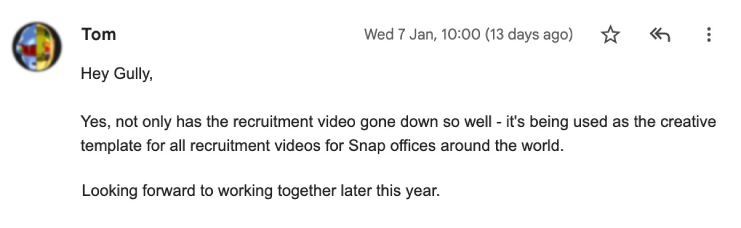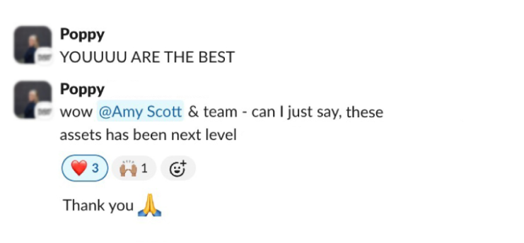 A dedicated project lead will drive your campaign, but you’ll meet and have access to the whole team along the way. You might even get invited to a shared Slack channel! Our London video agency is all about direct communication – it keeps things nimble, efficient, and ensures we’re always on the same page 💻